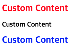 <!DOCTYPE html> <html lang="ko"> <head> <style> h1 { color: blue; } </style> </head> <body> <custom-ele title="WC"> <h1 slot="second">Custom Content</h1> <h2 slot="first">Custom Content</h1> </custom-ele> </body> <script> class CustomEle extends HTMLElement { constructor() { super(); this.attachShadow({ mode: 'open' }); this.shadowRoot.innerHTML = ` <style>h1{ color: red; }</style> <h1>Custom Content</h1> <slot name="first"></slot> <slot name="second"></slot> ` } } window.customElements.define('custom-ele', CustomEle); </script> </html>