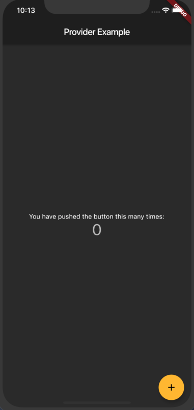 import 'package:flutter/material.dart'; void main() => runApp(MyApp()); class MyApp extends StatelessWidget { @override Widget build(BuildContext context) { return MaterialApp( title: 'Flutter Demo', theme: ThemeData( brightness: Brightness.dark, ), home: MyHomePage(title: 'Provider Example'), ); } } class MyHomePage extends StatefulWidget { MyHomePage({Key key, this.title}) : super(key: key); final String title; @override _MyHomePageState createState() => _MyHomePageState(); } class _MyHomePageState extends State<MyHomePage> { int _counter = 0; void _incrementCounter() { setState(() { _counter++; }); } @override Widget build(BuildContext context) { return Scaffold( appBar: AppBar( title: Text(widget.title), ), body: Center( child: Column( mainAxisAlignment: MainAxisAlignment.center, children: <Widget>[ Text( 'You have pushed the button this many times:', ), Text( '$_counter', style: Theme.of(context).textTheme.display1, ), ], ), ), floatingActionButton: FloatingActionButton( backgroundColor: Colors.amber, onPressed: _incrementCounter, tooltip: 'Increment', child: Icon(Icons.add), ), ); } }